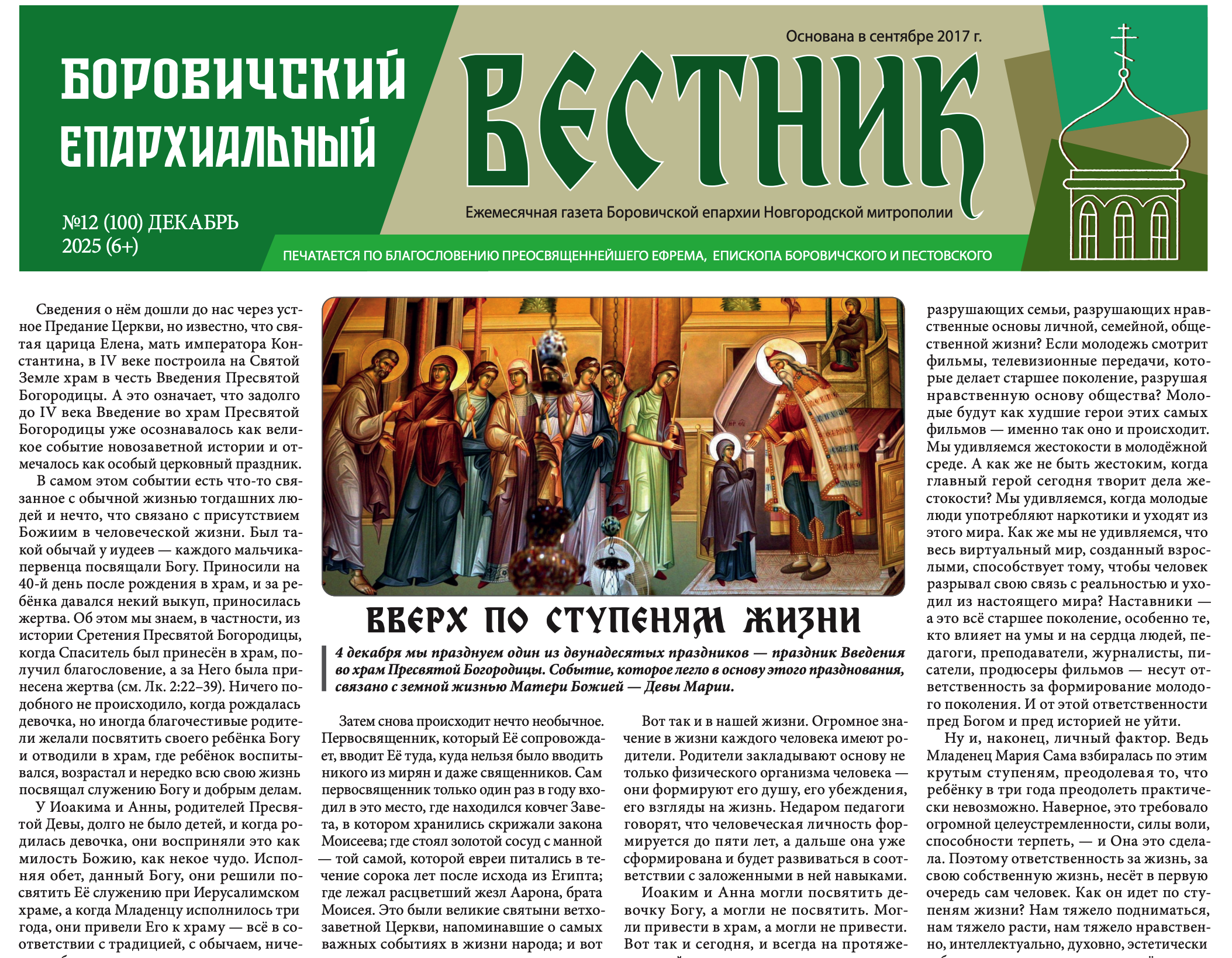 30 ноября 2025 года, в Неделю 25-ю по Пятидесятнице, Преосвященный Ефрем, епископ Боровичский и Пестовский, совершил Божественную литургию в храме во имя Покрова Пресвятой Богородицы г. Пестово. Читать далее