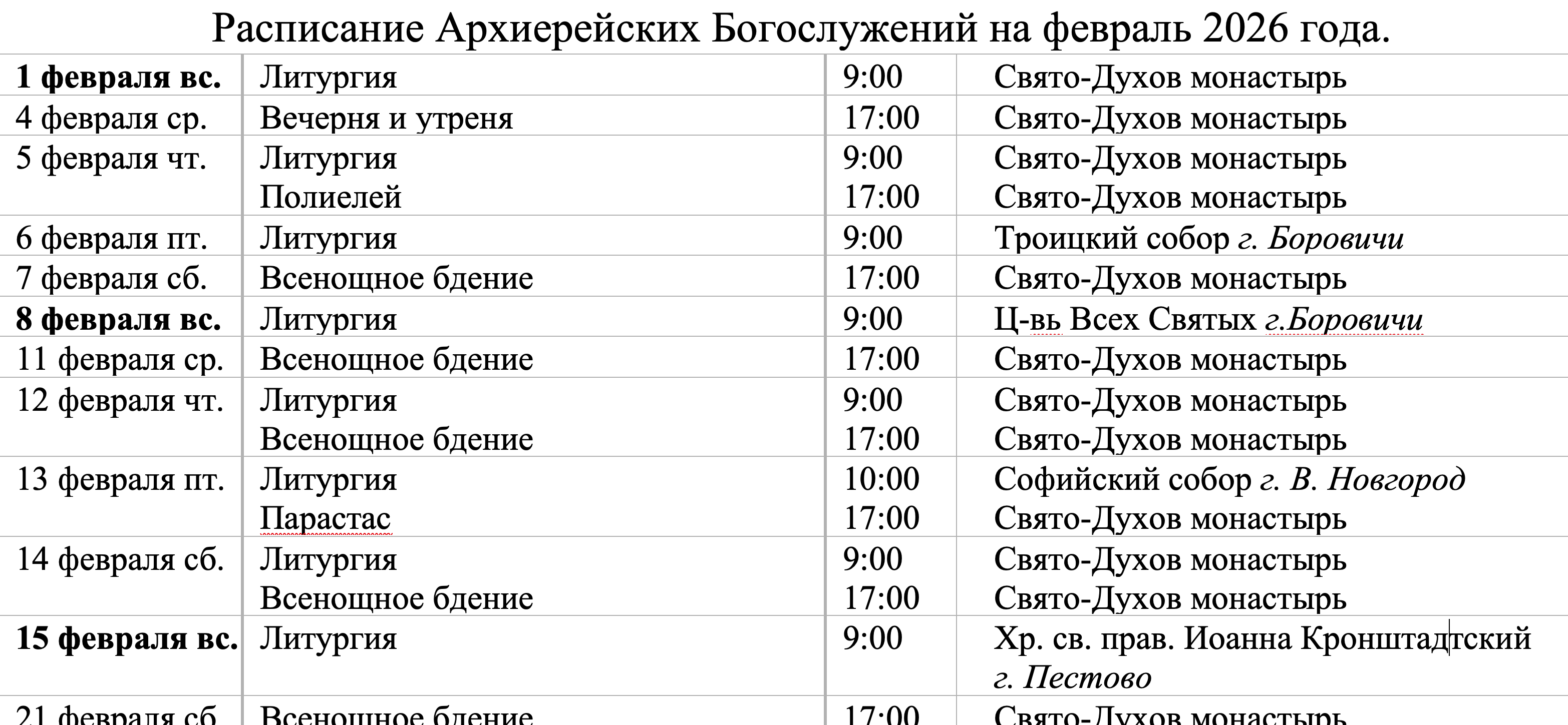 Расписание Архиерейских Богослужений на февраль 2026 года. Читать далее
