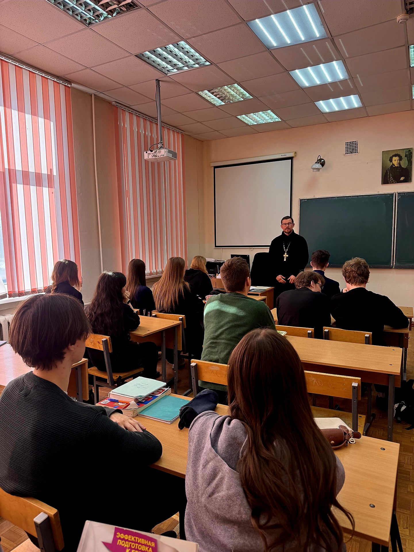 23 марта 2026 года настоятель храма святой великомученицы Параскевы иерей Роман Мороко посетил городскую гимназию, где провел тематический урок для учащихся 11-го класса.